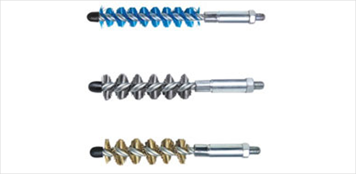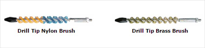 | These Brushes are used to clean internally grooved tubes. The drill tip of brushes cleans through hard scale before the brush cleaning action takes over. The large diameter of this brush cleans into the grooves of the tubes and the small diameter into the lands of the tube's rifling. |