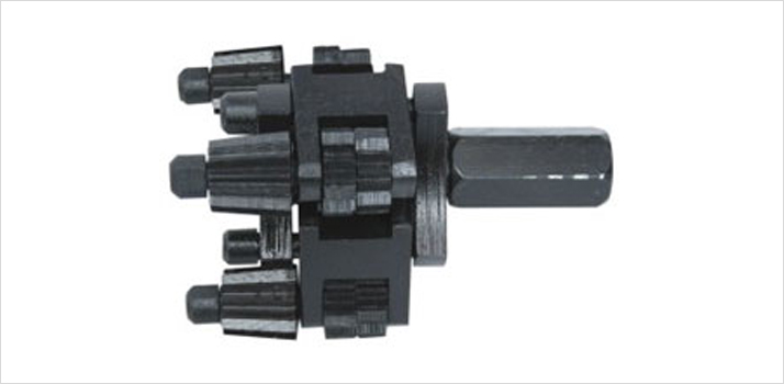 | These Cutter Heads have 3 to 5 freely pivoted arms, activated centrifugally, which swing out to give access to any part of tube wall. |